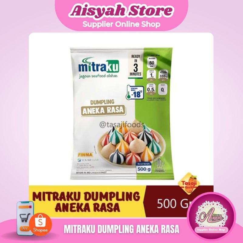 MITRAKU Dumpling Aneka Rasa [500gr] bisa direbus atau digoreng. Terbuat dari ikan pilihan yang digiling halus dan di campur sempurna dengan bumbu spesial, tidak kempes, gurih dan lembut.