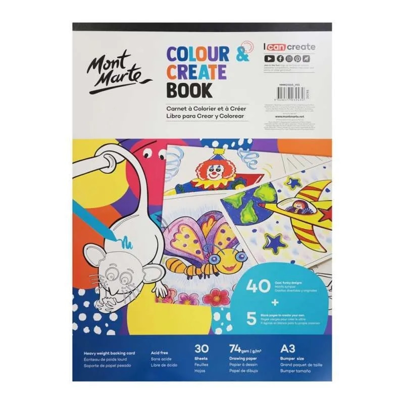 Introduce your little artists to a world of creativity with this fun colouring book. It’s full of 40 designs that kids can bring to life, plus 5 blank pages where they can express themselves.