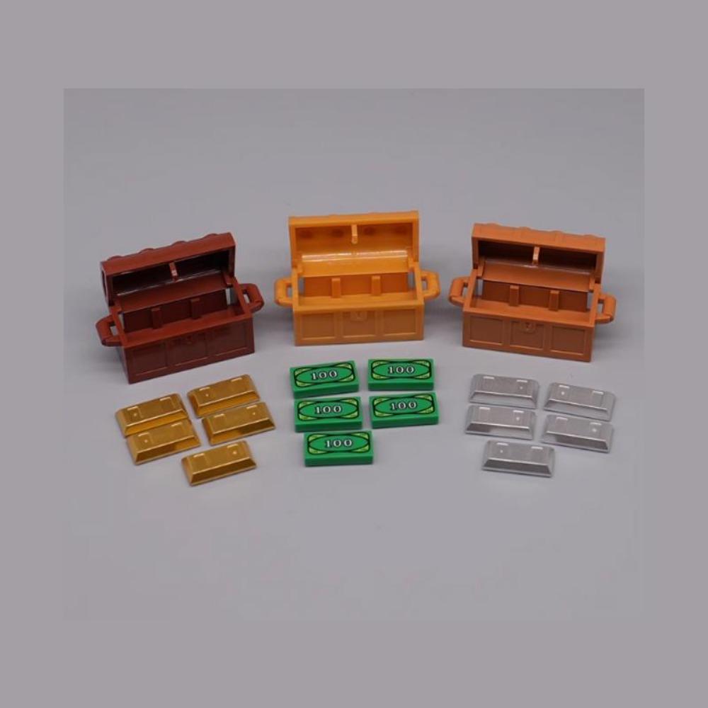 MOC Персонаж Сцена Строительные Блоки Аксессуары Сейфы для Сокровищ Золотые и Серебряные Руды Алмазы Коробки для Долларов Ключи Игрушки Подарочные Кирпичики