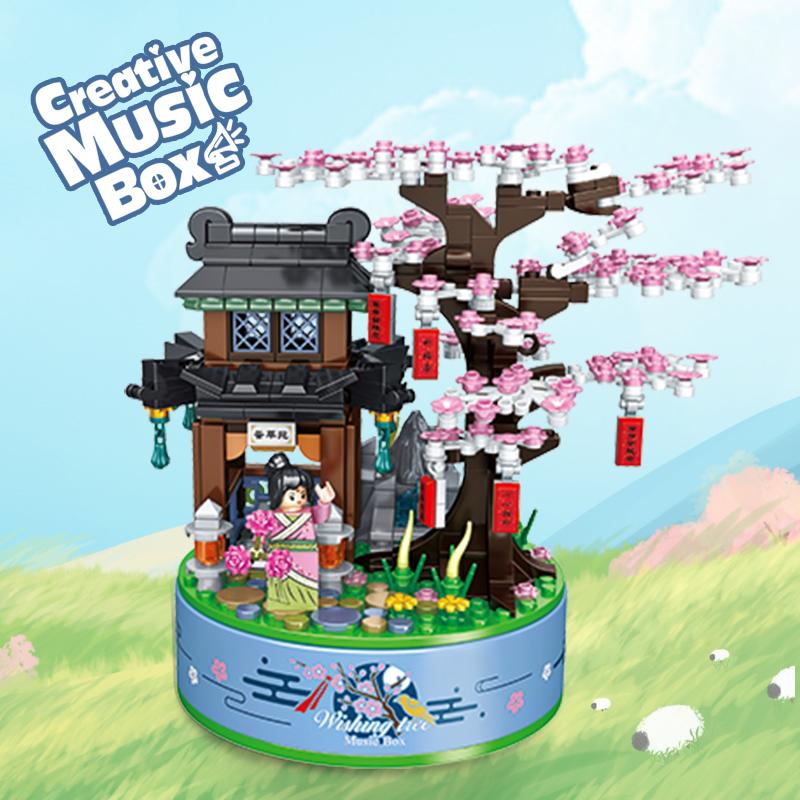 MOC Снежный замок Сакура Заводной вращающийся музыкальная шкатулка Строительные блоки со светом подарки на день рождения для девочек 656015 No Box