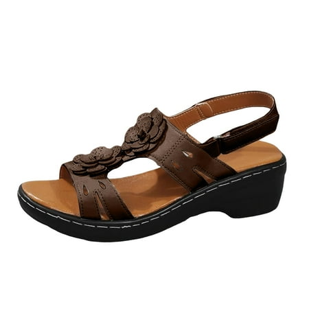 WNVMWI Sandals Women Women s Flat Sandals Summer Casual Sandals for Women 2024 Brown Shoes Slippers Flip Flops Large Size Sandals Round Toe Flower Open Toe Retro Roman Wedge Sandals Comfortab Size 37