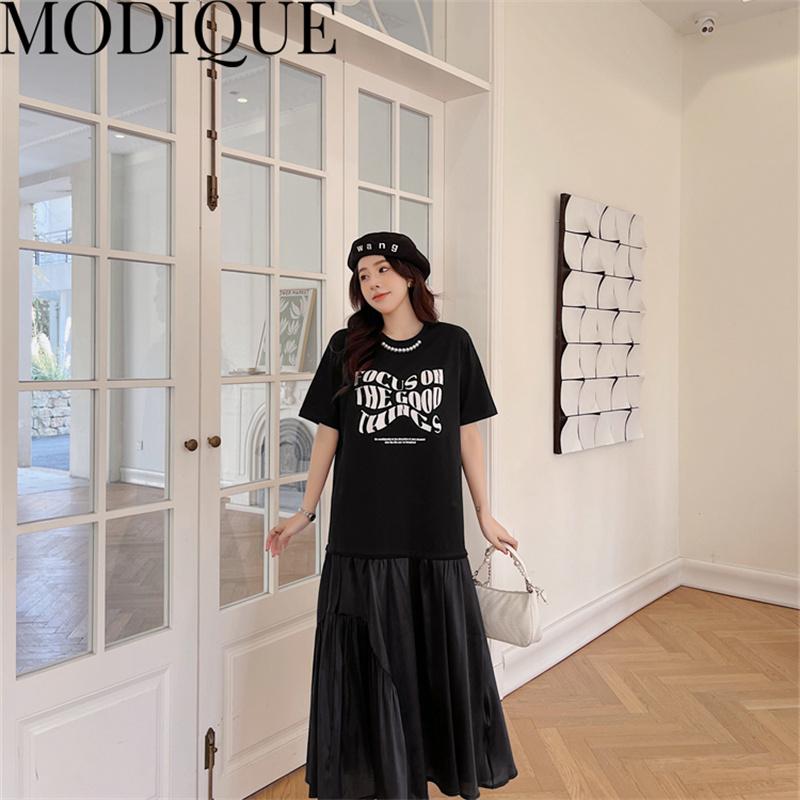 MODIQUE, летняя новая классическая рубашка больших размеров, женская свободная уличная одежда, хлопковое льняное платье с жемчугом, лоскутное повседневное женское платье с круглым вырезом