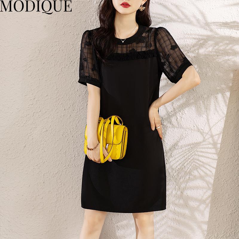 MODIQUE, летняя новая классическая рубашка больших размеров, женская свободная черная однотонная хлопково-льняная одежда, базовые повседневные женские платья с круглым вырезом и коротким рукавом