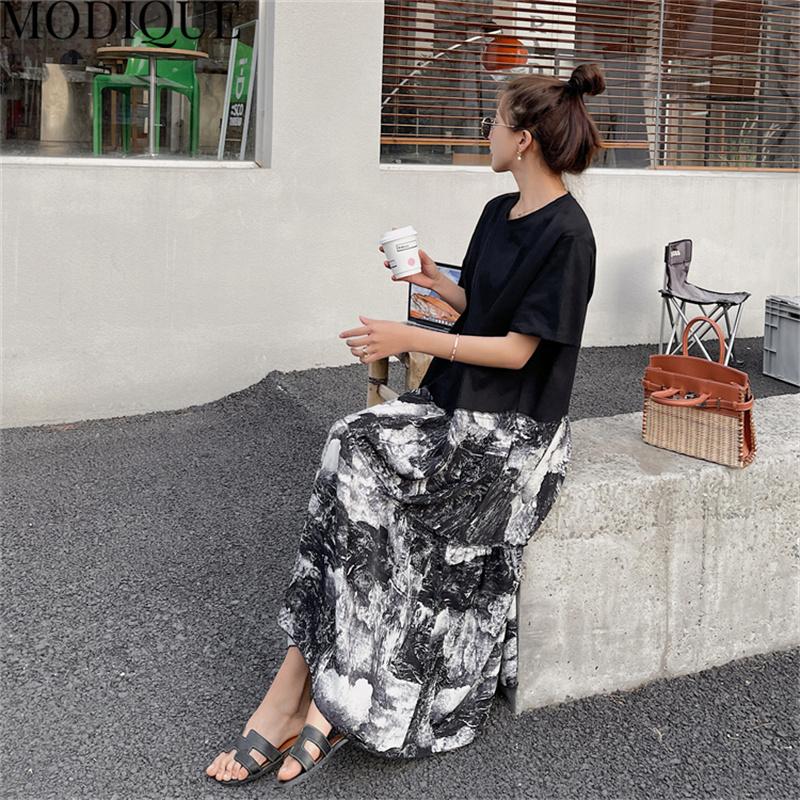 MODIQUE 2023 Лето Новое платье больших размеров Рубашка для женщин Свободное сращенное хлопчатобумажное льняное расписное платье Однотонные повседневные женские платья с коротким рукавом с O-образным вырезом