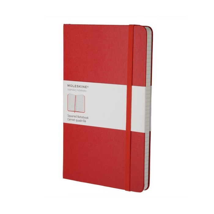 MOLESKINE Squared Red Large Notebook This red version of the basic, yet classic Pocket Squared notebook is a stylish travel companion, perfect for calculations, thoughts and passing notes. Like its black best selling counterpart, it has a cardboard bound cover with rounded corners, acid free paper, a bookmark, an elastic closure and an expandable inner pocket that contains the Moleskine history. Details Size (inches): 5\ x 8 r Size (cm): 13x21 ISBN 13: 978-88-6293-033-8