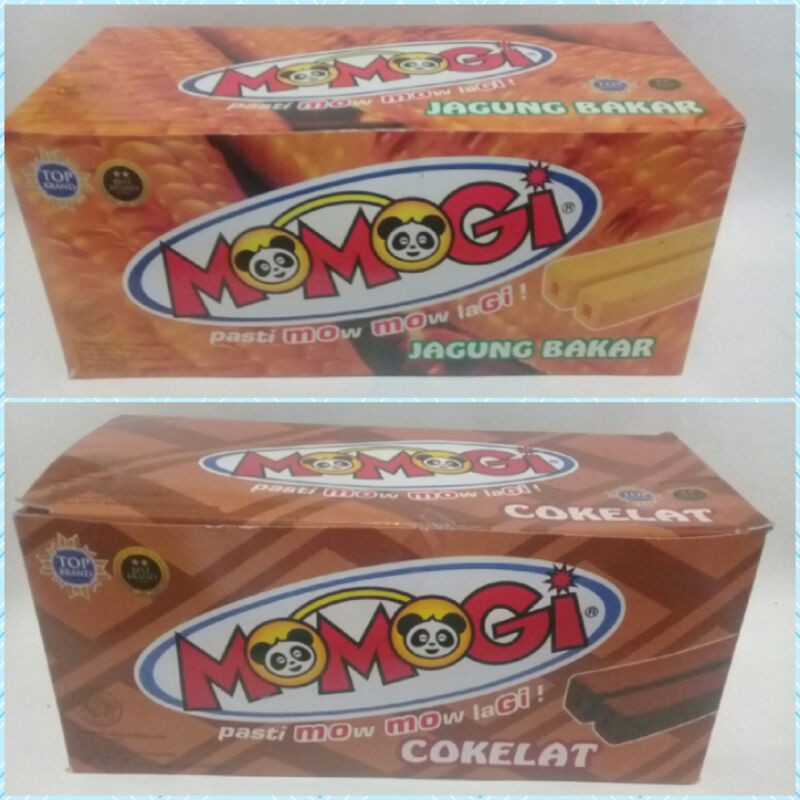 MENJUAL MOMOGI RP 500 1 BOX ISI 20 PCS, ANEKA RASA COKLAT JAGUNG GURIH RENYAH NIKMAT COCOK BUAT JAJANAN