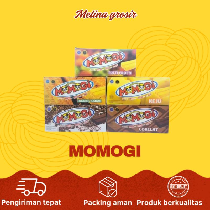 MOMOGI SNACK STICK dengan berbagai varian rasa mulai dari coklat, tuti fruitti, cappucino, jagung bakar, dan keju.