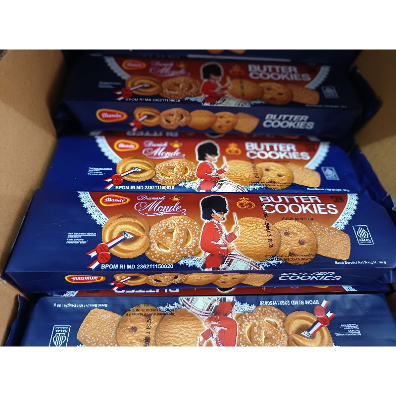 Monde Butter Cookies dibuat dari bahan-bahan pilihan dan bermutu tinggi dengan cita rasa yang nikmat dan harum.