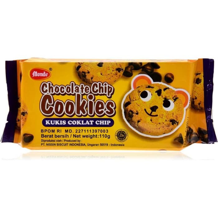 Menikmati waktu santai memang kurang lengkap rasanya tanpa ditemani kudapan spesial yang renyah dan memiliki cita rasa yang unik. Kukis Monde Chocolate Chip ini hadir untuk menjadi pilihan camilan yang menyemarakkan waktu luang dan kumpul bersama Anda. Monde Chocolate Chip Cookies dibuat dalam bentuk kepala beruang lucu dengan taburan choco chips yang crunchy. Kombinasi kukis nya yang renyah dan choco chip nya yang lezat menciptakan sensasi yang istimewa saat dikunyah. Sangat cocok untuk kamu yang menyukai rasa manis dan hobi ngemil saat waktu luang atau di tengah waktu beraktivitas. Lebih mantap lagi, jika dinikmati bersama teh atau kopi favorit. Buat waktu santai atau kumpul seru mu lebih asyik bersama Monde Chocolate Chip Cookies 110g.