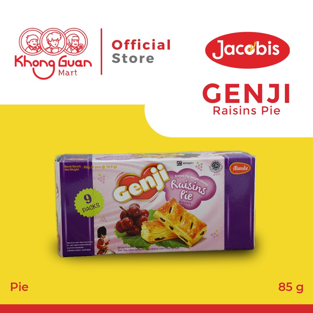 Genji Raisins Pie 95 gram merupakan pie renyah yang terbuat dari bahan pilihan dan berkualitas, manisnya cherry menyatu di dalam pie yang lembut. kemasan praktis dan ekonomis sehingga cocok dibawa kemanapun dan kapanpun. Mengandung Vit B6, B12, C, D yang baik bagi tubuh, Genji Raisins Pie cocok menjadi camilan ringan yang menyehatkan yang bisa di santap bersama orang tersayang.