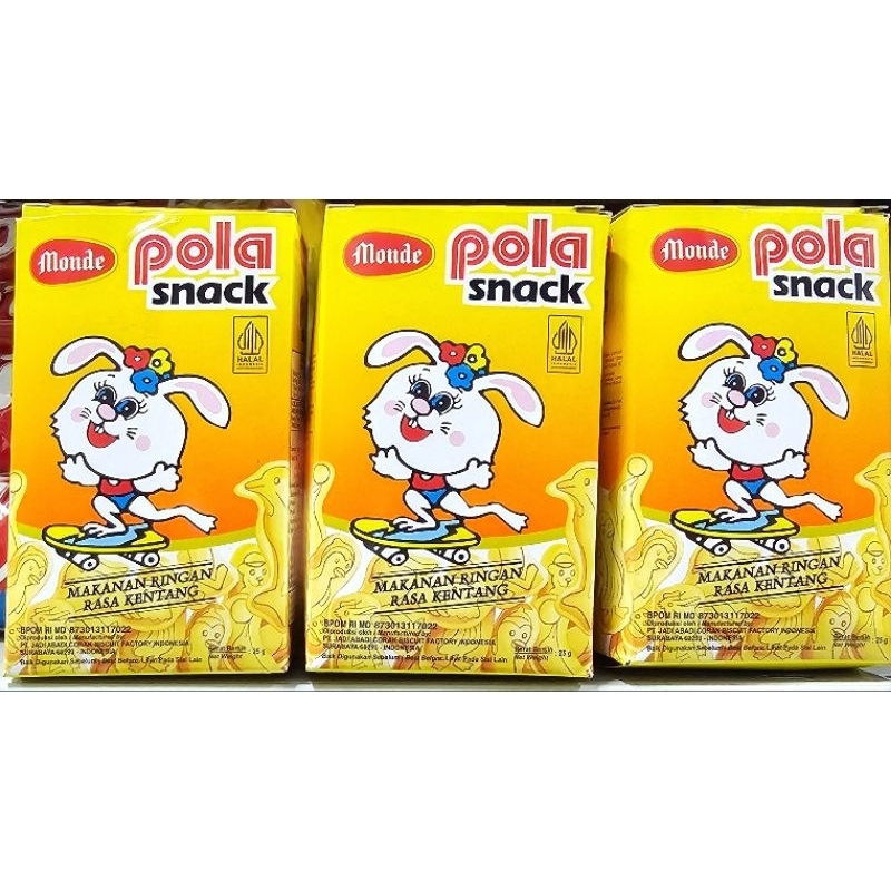 Monde pola snack adalah makanan ringan rasa kentang dengan setiap keping biskuitnya terdapat gambar yang menarik. Biskut ini memiliki tekstur yang renyah dan rasa yang gurih sangat cocok dikonsumsi oleh anak-anak saat bermain atau dibawa bepergian.