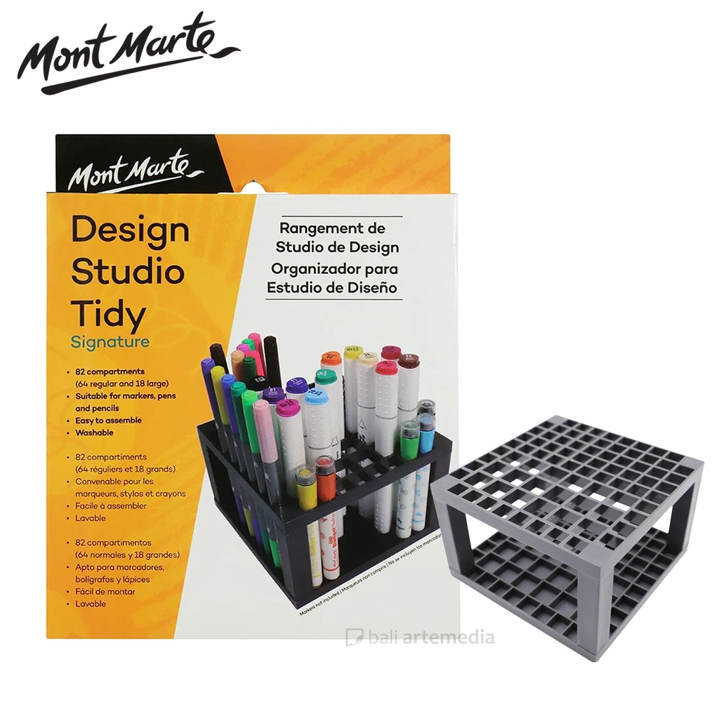 The Signature Studio Tidy features 82 compartments (64 regular and 18 large) that fits your markers, pens and pencils. This studio tidy is easy to assemble, washable and sits comfortably on desks or studio shelves.