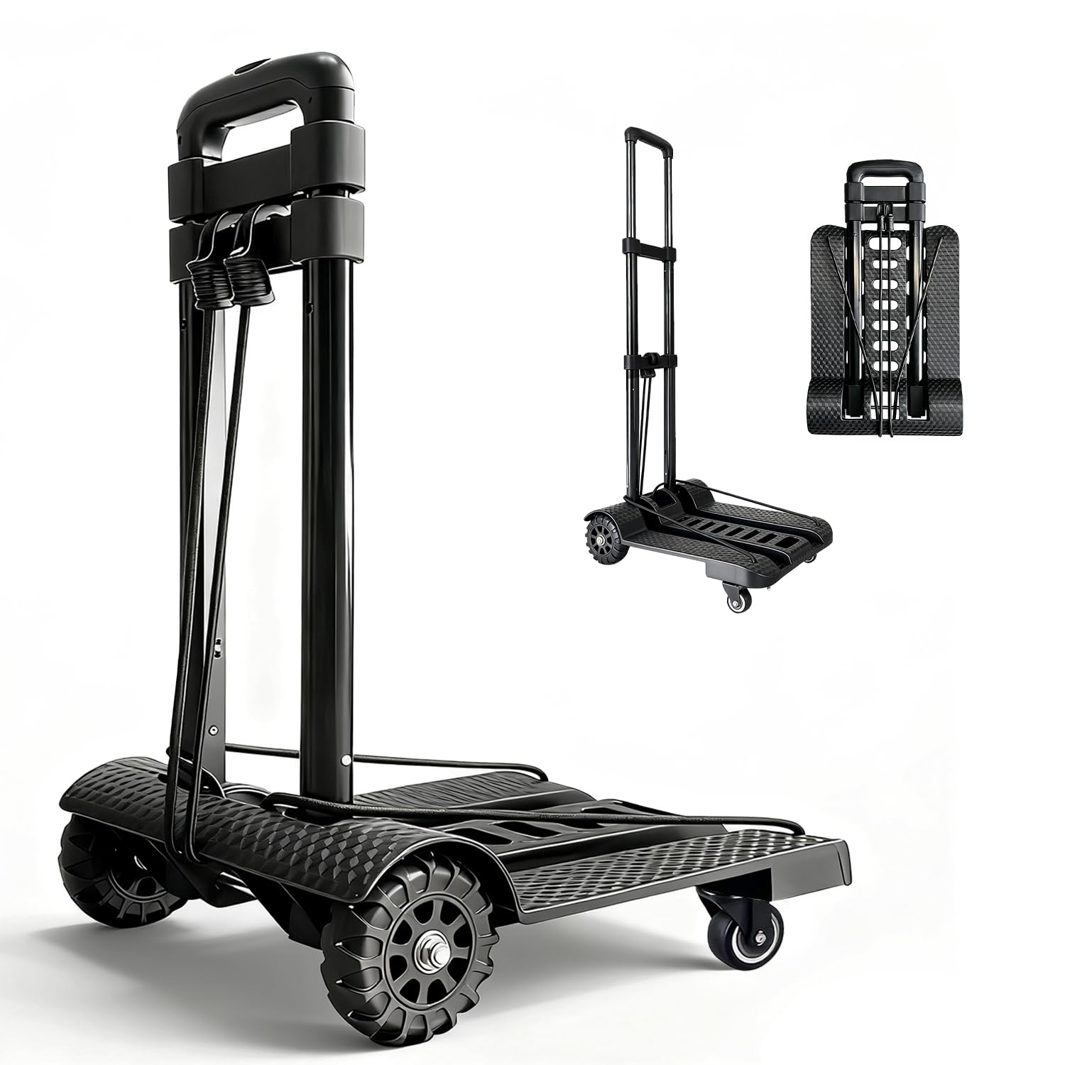 MOON LENCE Складная Переноска с Эластичными 4 Идеально подходит для Багажа и с Поворотными Колесиками Тележка, Компактная, Легкая, Бесшумная, Ремни, Колеса, На Открытом Воздухе, чёрный
