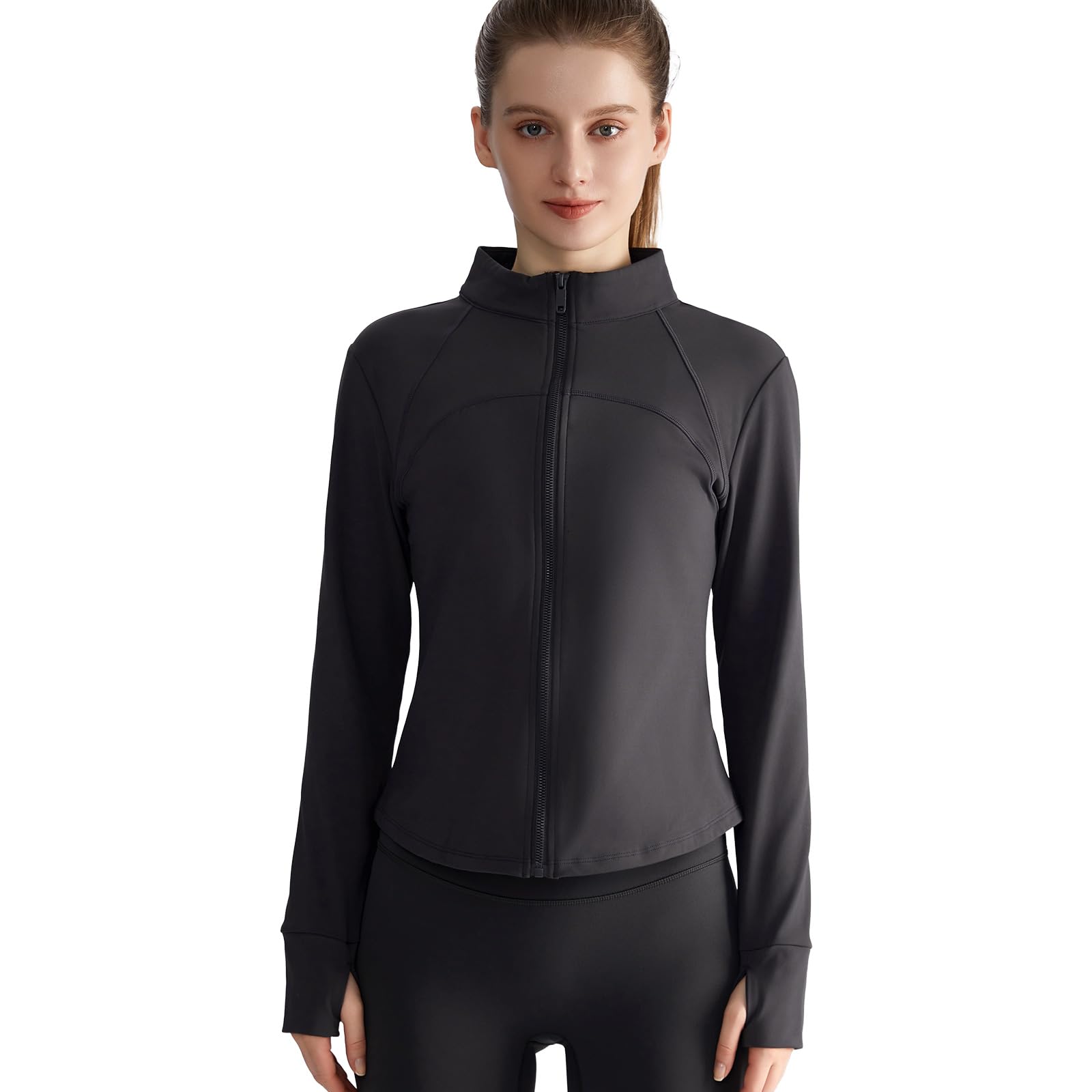 MORGEN SKY Толстовка с длинным рукавом для йоги на молнии во всю длину, Идеально для и WT050 Размер Женская футболка, Шея, Отверстия для больших пальцев, Фитнес, Тренировки, Весна/Осень,