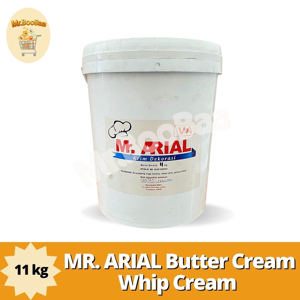 Butter Cream MR. ARIAL merupakan jenis krim yang paling sering digunakan untuk menghias kue. Memiliki tekstur yang halus, dibuat dengan bahan berkualitas tinggi dengan rasa Vanilla.
