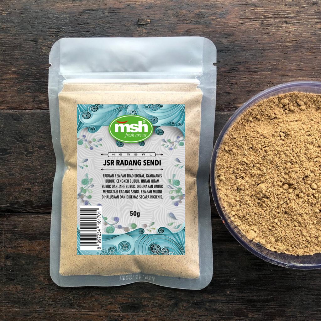 JSR Radang Sendi merupakan perpaduan rempah tradisional, kayu manis bubuk, cengkeh bubuk, jinten hitam bubuk, dan jahe bubuk. Paduan herbal yang merupakan Jurus Sehat Rasulullah atau JSR ini memiliki manfaat untuk mengatasi radang sendi.