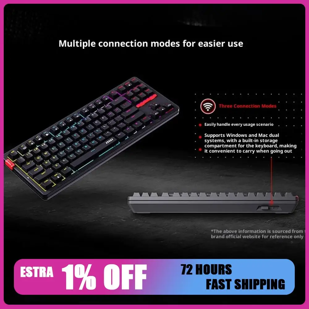 MSI FORGE GK300W трехрежимная беспроводная механическая клавиатура игровая офисная горячая замена колпачки для клавиш из ПБТ RGB световая прокладка эргономичная клавиатура