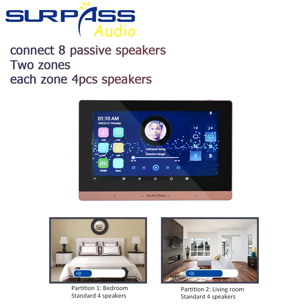 MSPW7825+CR525 Touch Screen Wall Amplifier Android 7.1 Keypads With Ceiling Speaker Audio Kit Home Stereo Sound Theater System
