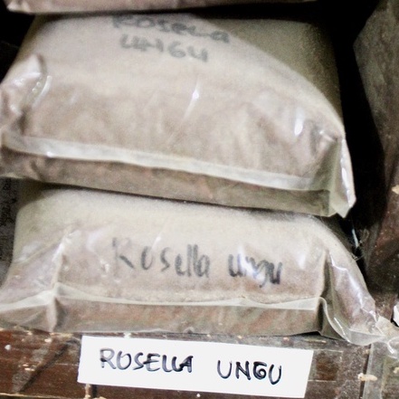 Asli dari simplisia bunga Rosella Ungu dikeringkan kemudian digiling