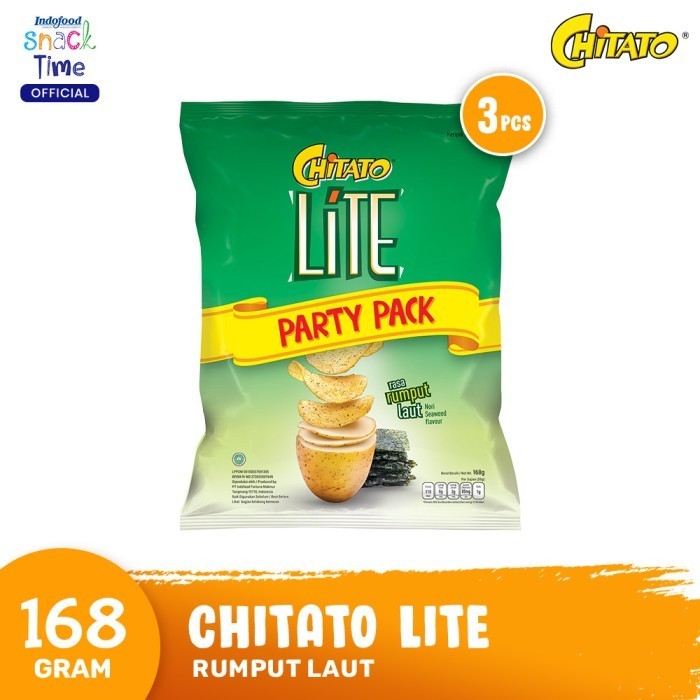 Isi paket:3 x Chitato Lite Rumput Laut 168 GrGurihnya rumput laut berpadu dengan renyahnya 100% potongan kentang asli yang diiris lebih tipis, bikin Chitato Lite punya rasa yang sempurna di setiap gigitan. Jadikan setiap momen dalam hidup kamu berasa lebih ringan karena Chitato Lite, #LiteUpYourLife!KOMPOSISI:Kentang (65%), Minyak Olein Kelapa Sawit, Bumbu (mengandung Gula, Garam, Penguat Rasa Mononatrium Glutamat, Bubuk Rumput Laut (8%), Bubuk Merica, Bubuk Kecap, Bubuk Bawang Putih, Penguat Rasa Dinatrium Inosinat dan Dinatrium Guanilat, Pemanis Alami Glikosida Steviol, Gandum, Ikan, Kerang). Informasi Alergen: mengandung kedelai, gandum, ikan, kerang.PENTING!Diwajibkan pembeli merekam video saat pembukaan paket. Tanpa adanya bukti video, akan sangat sulit untuk kami memproses keluhan Anda. Barang kami selalu ready ya kak bila ada di etalase