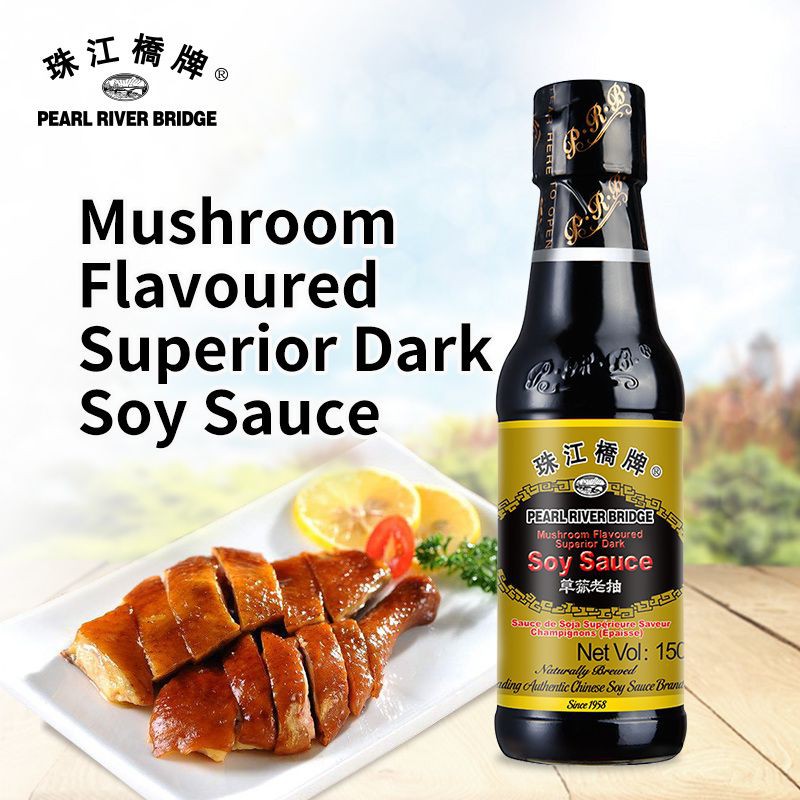 MUSHROOM SOY SAUCE PEARL RIVER BRIDGE 150ML (KECAP RASA JAMUR) Kecap rasa jamur mushroom soy merupakan produk yang sangat cocok untuk digunakan sebagai pelengkap dan penyedap rasa berbagai macam masakan.