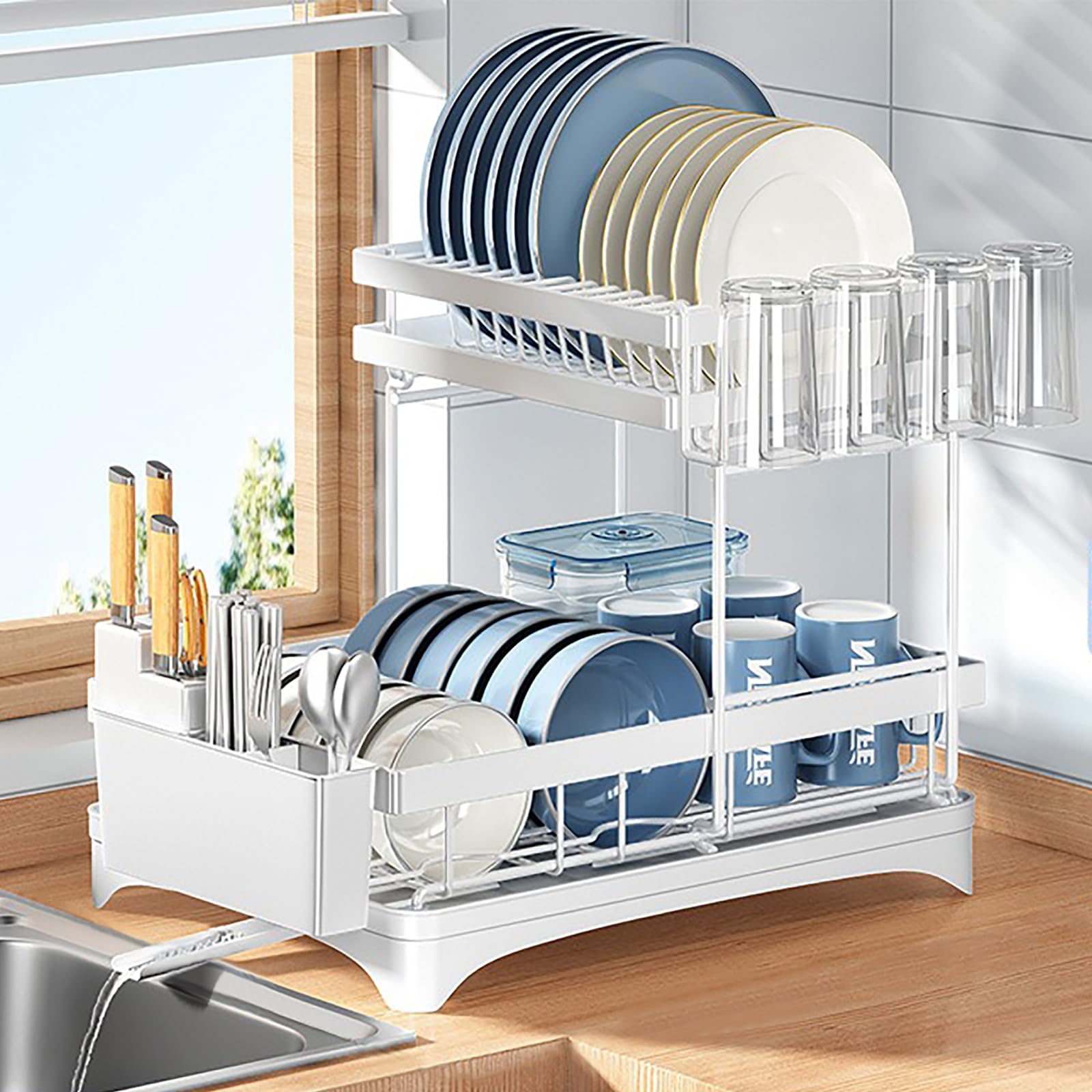 MUTAO Сушилка для посуды Автоматический слив Кухонное хранение Вода Тарелка Тарелка Чашка Палочки для еды Разделочная доска Углеродистая сталь Тарелка Большая вместимость Тарелка Легко Не требуются инструменты 4 белый