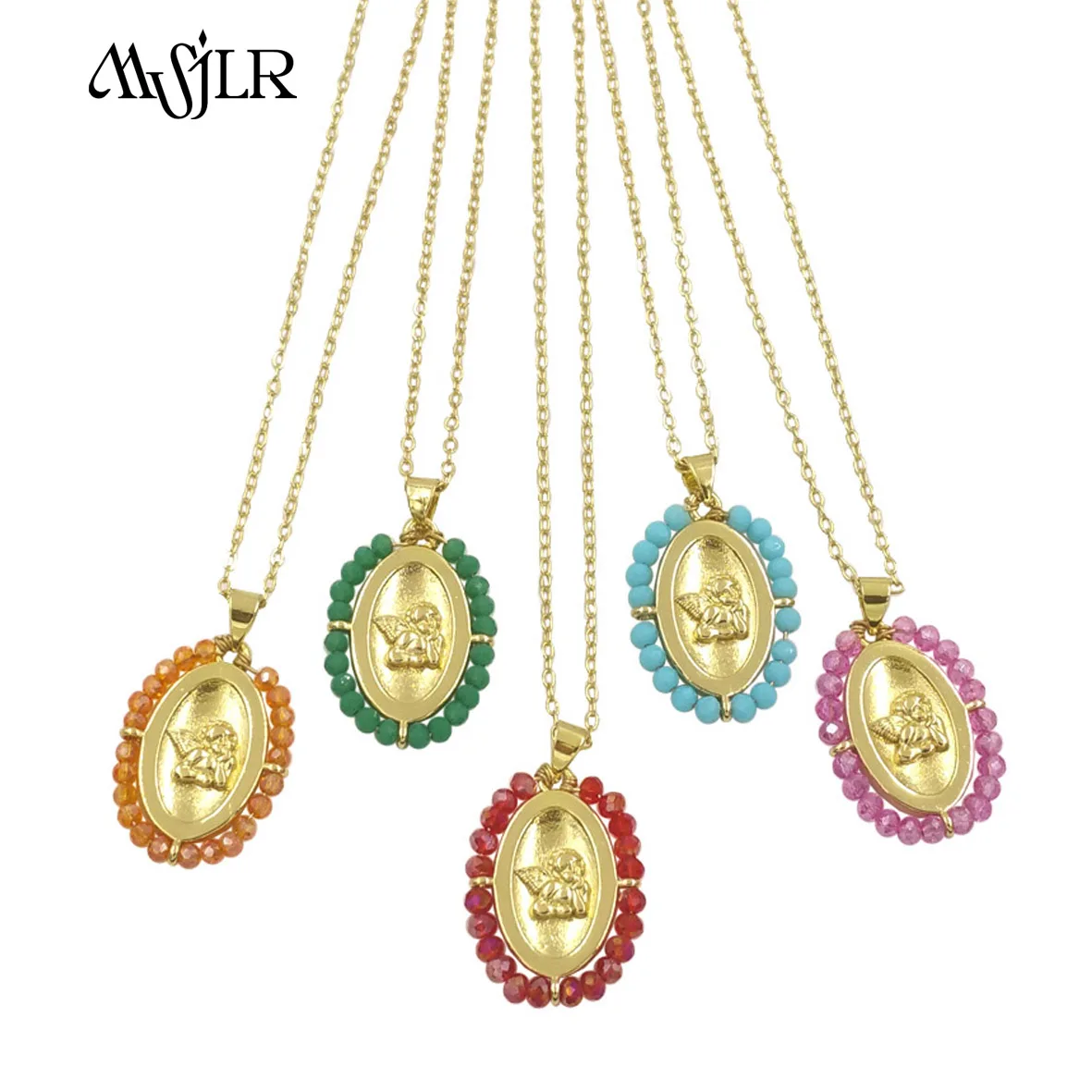 MVN072 2024 красочное овальное милое изысканное ожерелье с подвеской в виде ангела позолоченное ретро-стильное украшение на день рождения