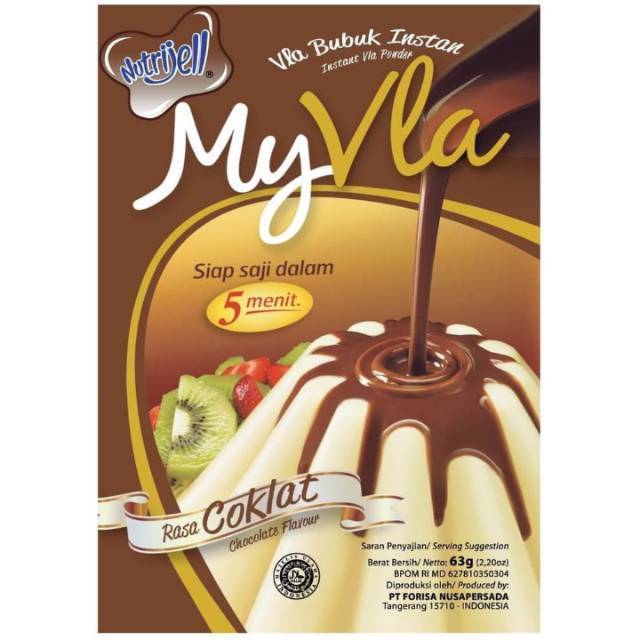 Vla Bubuk Instan Nutrijell Siap saji dalam 5 menit Tersedia dalam rasa Coklat (63gr) atau Vanila (63gr) MyVla adalah vla bubuk instan tanpa dimasak cukup diseduh dengan 200 ml air panas dispenser minimal 70C, sebagai pelengkap puding. Praktis dan nikmat.