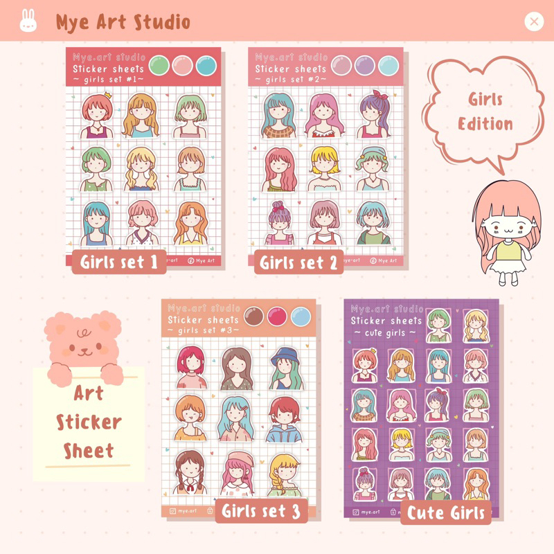 MYE ART STUDIO Sticker sheet A6 Cute Girls Set series
