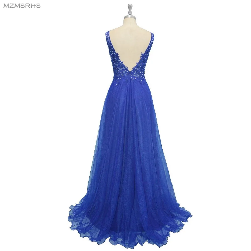 MZMSRHS длинное вечернее платье с v-образным вырезом, аппликацией и кристаллами, с открытой спиной, вечерние элегантные платья для выпускного в...