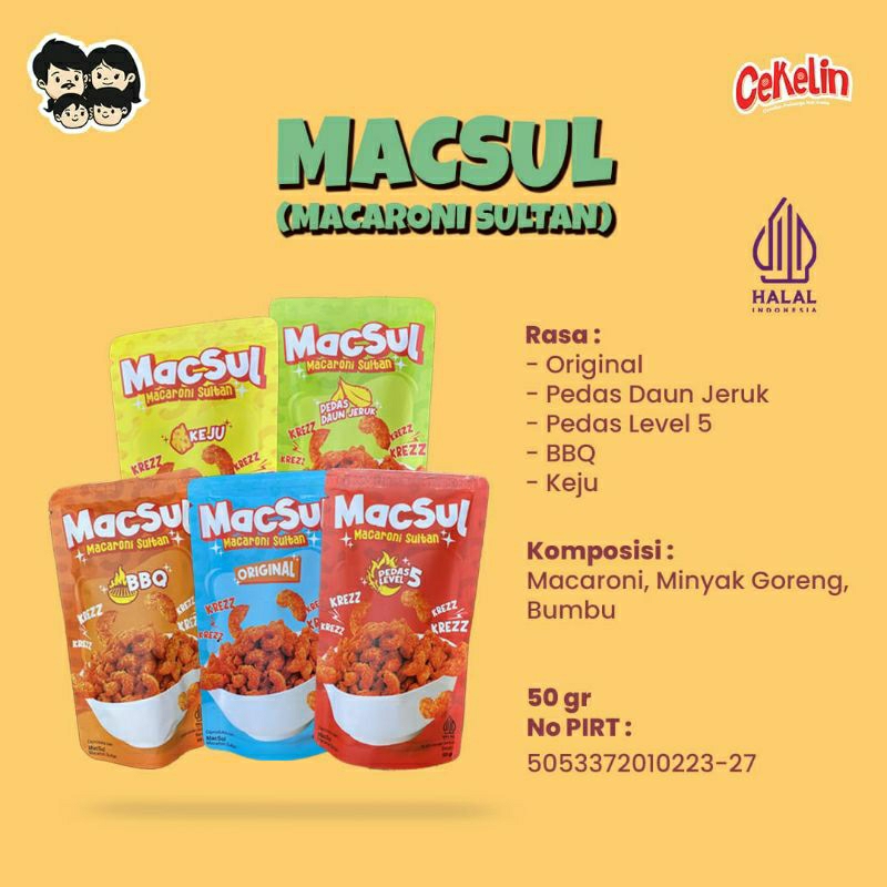 MacSul adalah cemilan makaroni renyah yang tersedia dalam 5 varian rasa lezat :