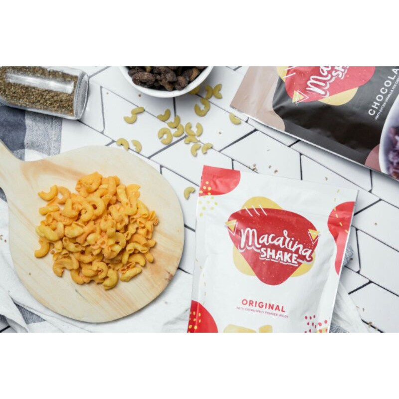 Macarina Shake diproduksi menggunakan jenis macaroni yang sangat jarang digunakan di pasaran. Dengan teknik penggorengan khusus dan terstandar, agar dapat menghasilkan tekstur renyah dan tidak keras, dengan ekstra bubuk cabai yang dapat di tambahkan sesuai selera.