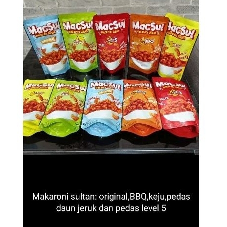 Cemilan keluarga Indonesia Macaroni sultan terdiri dari rasa original, BBQ, keju, pedas daun jeruk, dan pedas level 5. Semua variant memiliki rasa yang lezat dan gurih