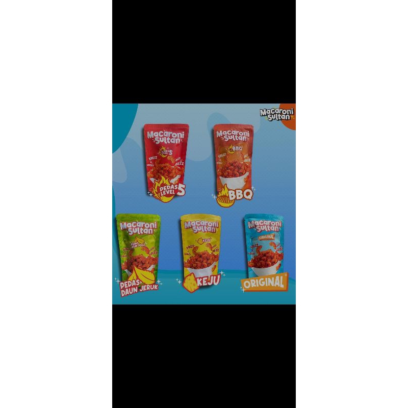 Macaroni Sultan adalah cemilan kekinian yang sangat nikmat di makan saat sedang santai bersama keluarga & sahabat. Rasanya enak, harga bersahabat dan tersedia 5 varian rasa :