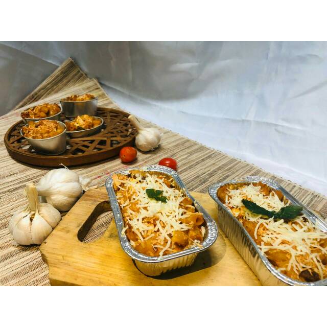Pasta macarani yang dicampur bersama saos bolognes homemade dengan tambahan daging giling dan sosis dilumurin saos white cream homemade lumer menjadi satu dengan taburan keju.