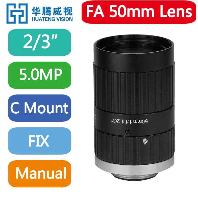 Machine Vision HD 5MP FA 2/3" 50mm C-Mount Industrial Lens Without Distortion Professional Industrial Camera Lens