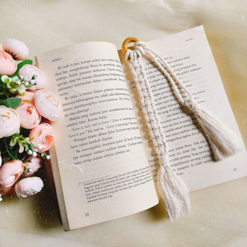 Macrame bookmark adalah pembatas buku dengan bahan cotton rope 3mm