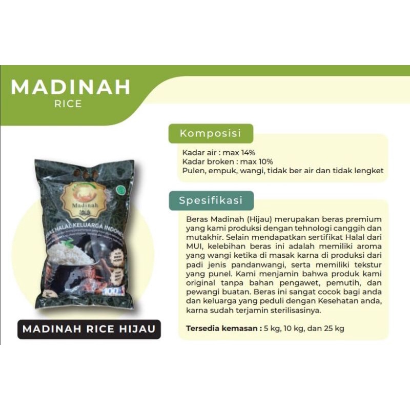 Beras Madinah Hijau Merupakan beras premium yg kami produksi dengan teknologi canggih dan mutakhir.