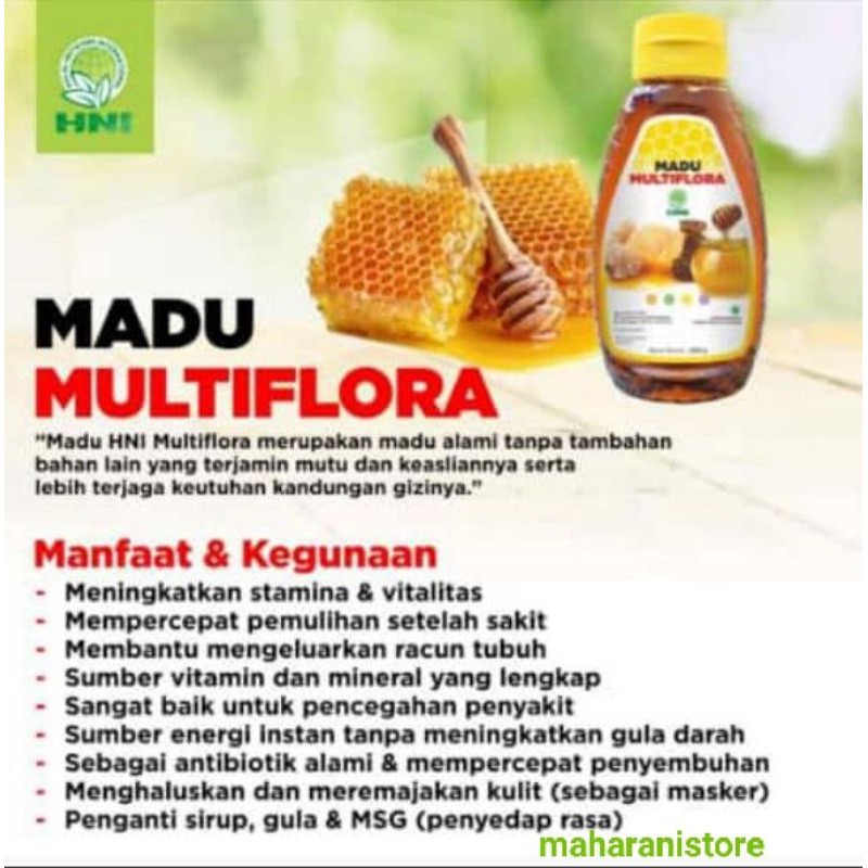 Madu Asli Multiflora HPAI merupakan madu alami tanpa tambahan bahan lain yang terjamin mutu dan keasliannya serta lebih terjaga keutuhan kandungan guzinya. dihasilkan dari lebah madu unggul " Apis Mellifera"
