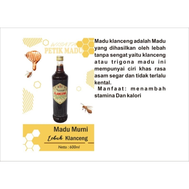 Madu Klanceng dihasilkan oleh lebah klanceng
