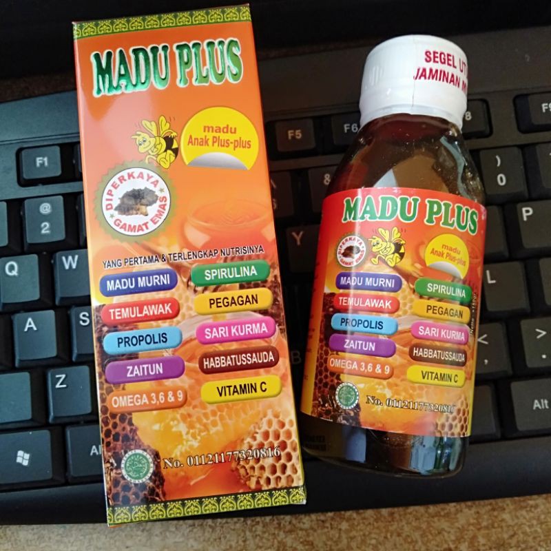 madu murni, spirulina, temulawak, pegagan, propolis, omega 3,6,9, sarikurma, zaitunn habbatussauda, vitamin c