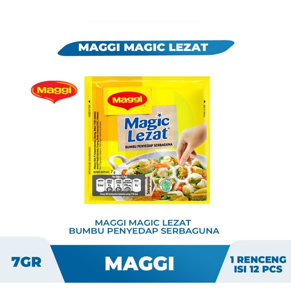 MAGGI Magic Lezat adalah bumbu peyedap serba guna yang mengeluarkan citra rasa citarasa terbaik setiap masakan tanpa menutupi rasa aslinya, hasilnya masakan jadi lebih kaya rasa dan lebih nikmat.