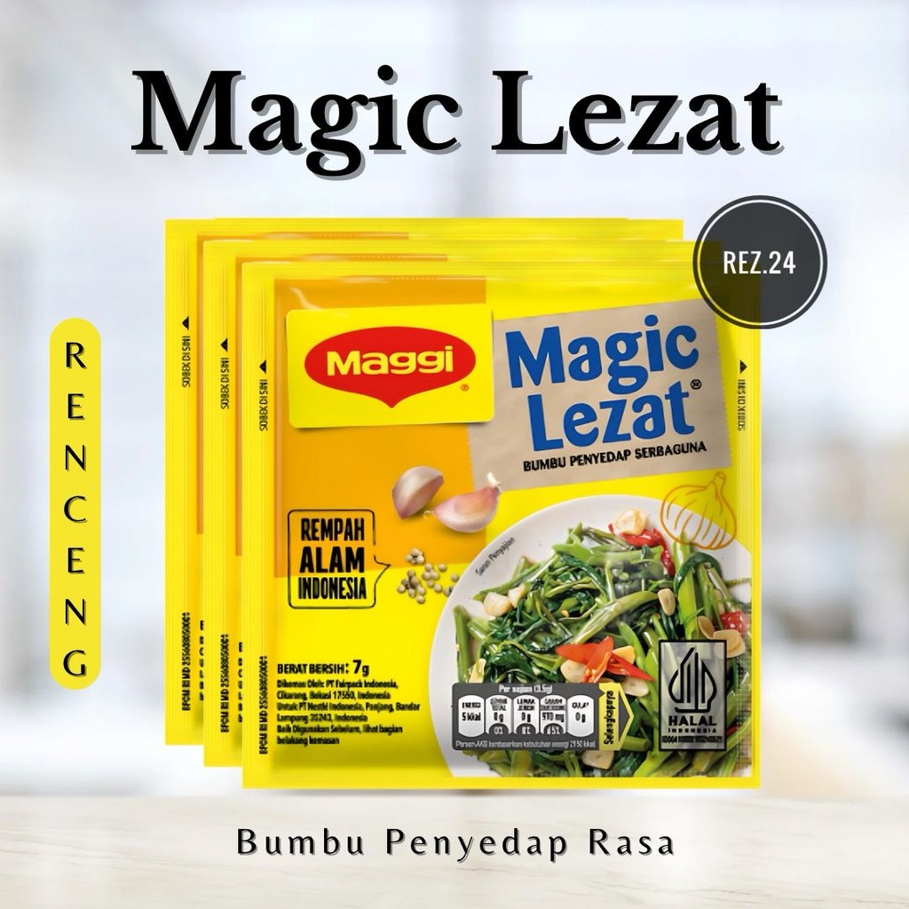 MAGGI Magic Lezat adalah bumbu penyedap serbaguna dengan rempah alam Indonesia dan ekstrak ayam, melezatkan tanpa merubah rasa asli masakan. Dalam bentuk granule, mengunci rasa kelezatan dalam setiap butiran. Bikin semua masakan lebih lezat!