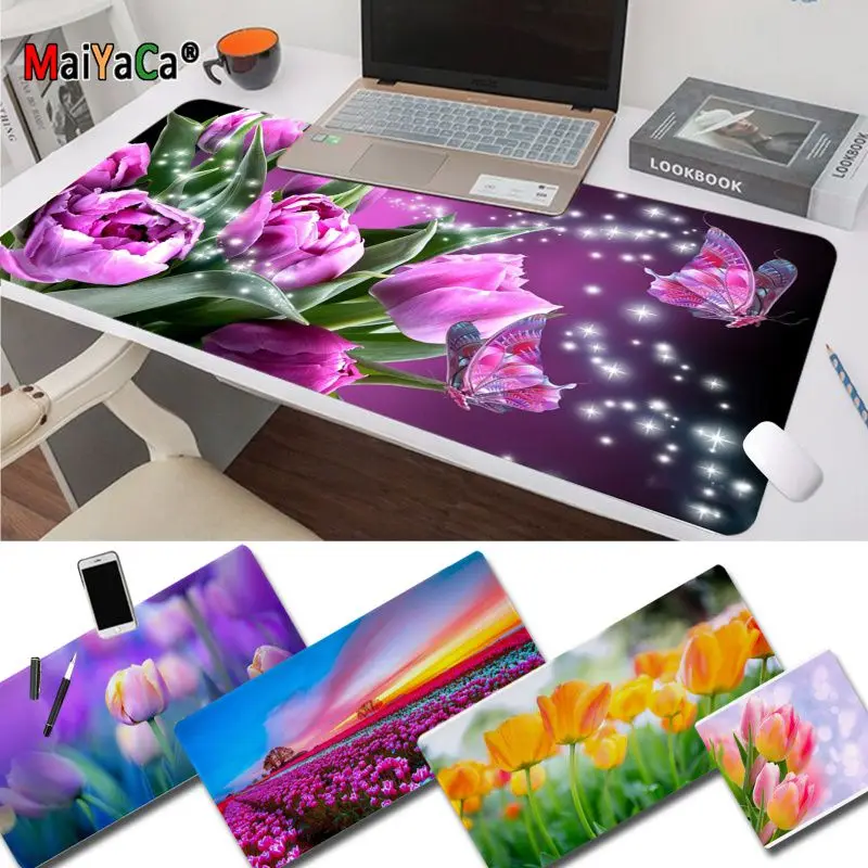 MaiYaCa мой любимый силиконовый большой/маленький коврик с цветами тюльпана для мыши, бесплатная доставка, большой коврик для мыши, коврик для ...