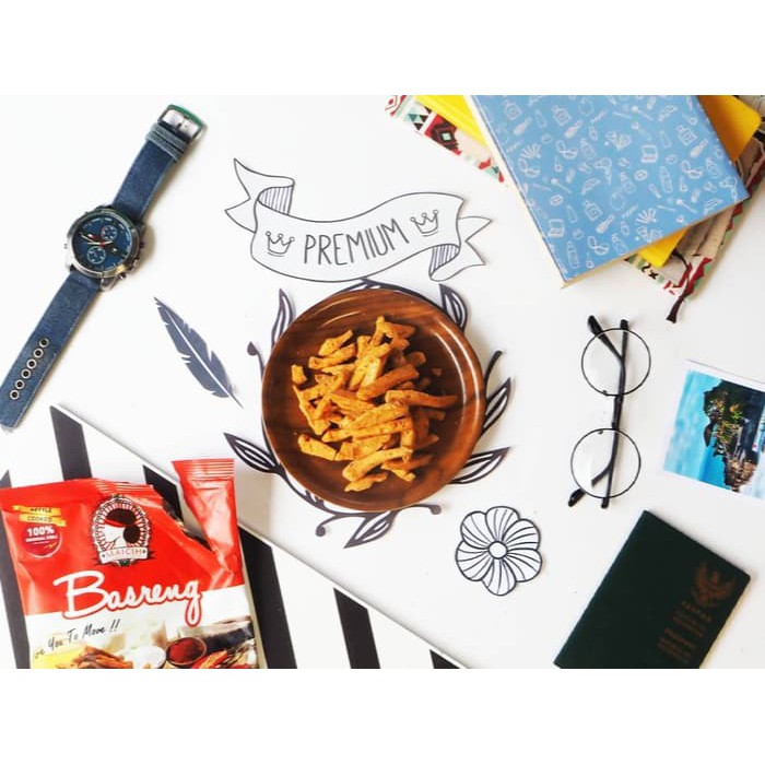 Cemilan berbentuk potongan-potongan panjang ini memiliki tekstur yang renyah dengan rasa gurih yang memanjakan lidah penikmatnya.