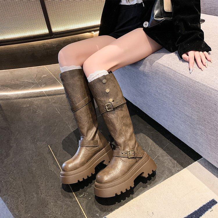 Maillard коричневые женские ботинки 2025 осень и зима новые толстые MM полные ноги увеличивающие рост рыцарские маленькие высокие ботинки 40 коричневый