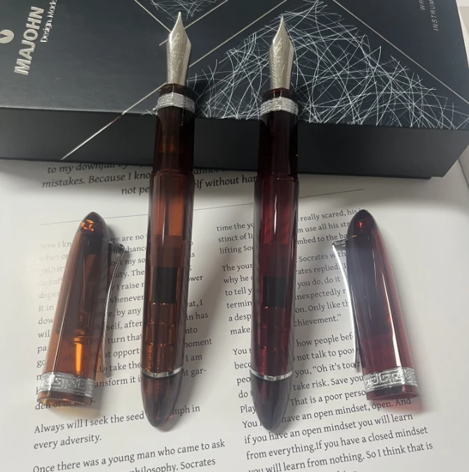 Majohn V60, прозрачная красная треугольная перьевая ручка из смолы, чернильная ручка для письма, школьные и офисные канцелярские принадлежности, подарок