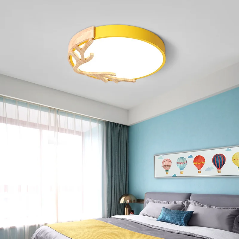 Makaron, круглая деревянная потолочная лампа для детской комнаты, искусственная современная и простая Скандинавская лампа с оленем, спальня
