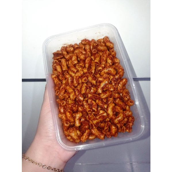 Perpaduan yang pas antara MAKARONI dengan bumbu pedas yang gurih ini.. uuuuuuwh dijamin deh bikin ga pengen berenti nyemil