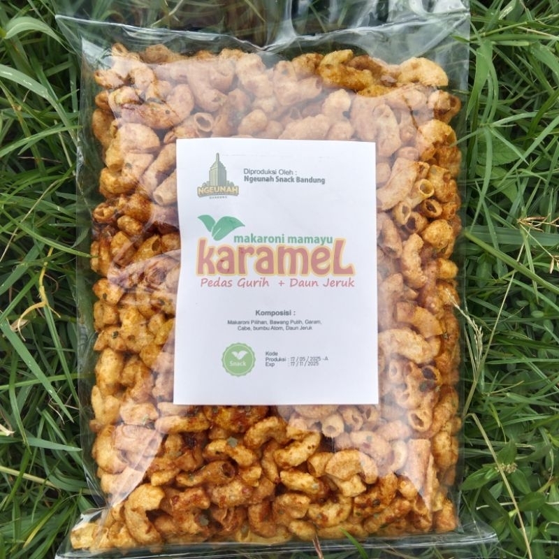 Makaroni Karamel Rasa Pedas di buat dari bahan pilihan sangat enak untuk cemilan keluarga apalagi penyuka pedas etsss tapi ada juga yang original nya